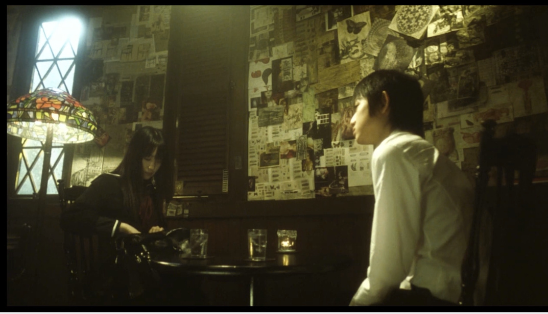 | Screencap from Japanese thriller "Goth" (2010). I absolutely adore the set design in this film. This cafe caters to people of dark persuasions, and is central to the plot of the movie! |